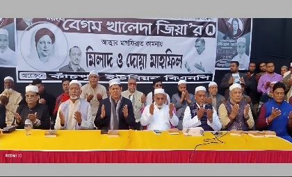 বেগম খালেদা জিয়ার আত্মার মাগফেরাত কামনায় নারায়ণগঞ্জে ফল আড়ৎদার মালিক সমিতির দোয়া মাহফিল