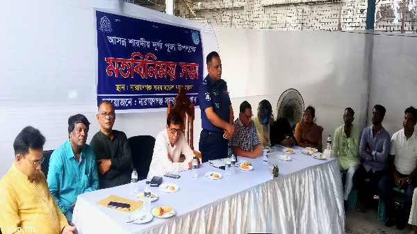 শুক্রবার ২৬ সেপ্টেম্বর বিকাল ৩টায় নারায়ণগঞ্জ সদর মডেল থানা প্রাঙ্গণে বাংলাদেশ পূজা উৎযাপন পরিষদ, পূজা উৎযাপন ফ্রন্ট’র নারায়ণগঞ্জ জেলা এবং মহানগরের নেতৃবৃন্দ ও সদর থানাধীন বিভিন্ন মণ্ডপের নেতৃবৃন্দের সাথে নারায়ণগঞ্জ সদর মডেল থানার আয়োজনে এ মত বিনিময় সভা অনুষ্ঠিত হয়েছে।