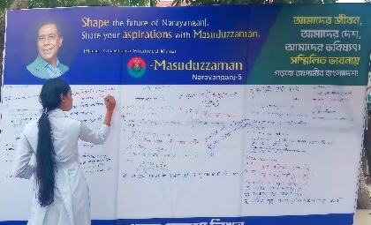 নারায়ণগঞ্জ ৫ আসনের বিভিন্ন এলাকায় জনজীবনের বাস্তব চিত্র, প্রয়োজন ও প্রত্যাশা নথিভুক্ত করতে “জনতার প্রত্যাশার ক্যানভাস” নামে একটি জনমত সংগ্রহ কার্যক্রম উদ্যোগ নিয়েছেন বিএনপি মনোনিত প্রার্থী, বিশিষ্ট সমাজসেবী ও ক্রীড়া সংগঠক মাসুদুজ্জামান। আজ (২ ডিসেম্বর ২০২৫), এই উদ্যোগের মাধ্যমে সর্বস্তরের সাধারণ মানুষ তাদের দৈনন্দিন সমস্যা, প্রয়োজন, প্রত্যাশা এবং স্থানীয় উন্নয়ন সম্পর্কে মতামত লিখে সরাসরি জানাতে পারবেন। কর্মসূচিটি ধারাবাহিকভাবে নারায়ণগঞ্জ–৫ আসনের বিভিন্ন স্থানে আয়োজন করা হবে, যাতে সকল শ্রেণি পেশার নাগরিক তাদের নিজস্ব মতামত প্রকাশ করতে পারেন।