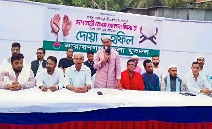 সাবেক প্রধানমন্ত্রী ও বিএনপি চেয়ারপারসন দেশনেত্রী বেগম খালেদা জিয়ার আশু রোগমুক্তি কামনায় নারায়ণগঞ্জে দোয়া ও মিলাদ মাহফিল অনুষ্ঠিত হয়েছে। নারায়ণগঞ্জ জেলা যুবদলের উদ্যোগে মঙ্গলবার (২ ডিসেম্বর) বাদ আসর শহরের মাসদাইর বেকারি মোড় সংলগ্ন পতেঙ্গা মাঠে এই মাহফিলের আয়োজন করা হয়।