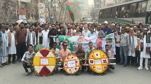 মহান বিজয় দিবস উপলক্ষে নারায়ণগঞ্জ জেলা ছাত্রদলের সাবেক সভাপতি ও মহানগর বিএনপির কারানির্যাতিত নেতা জাকির খানের নির্দেশনায় চাষাড়া বিজয়স্তম্ভে পুষ্পস্তবক অর্পণ করে শহীদদের প্রতি বিনম্র শ্রদ্ধা জানিয়েছেন তার হাজারো সমর্থক।