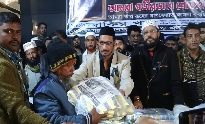 বিএনপি চেয়ারপারসন ও সাবেক প্রধানমন্ত্রী বেগম খালেদা জিয়ার রুহের মাগফেরাত কামনায় নারায়ণগঞ্জে দোয়া মাহফিল ও শীতার্তদের মাঝে কম্বল বিতরণ করা হয়েছে। কেন্দ্রীয় কর্মসূচির অংশ হিসেবে নারায়ণগঞ্জ জেলা ছাত্রদলের সাবেক সভাপতি ও মহানগর বিএনপি নেতা জাকির খানের উদ্যোগে এই কর্মসূচি পালিত হয়।