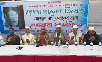 প্রয়াত বিএনপি চেয়ারপার্সন ও সাবেক প্রধানমন্ত্রী বেগম খালেদা জিয়ার কর্মময় জীবন স্মরণ ও তাঁর রুহের মাগফিরাত কামনায় নারায়ণগঞ্জ জেলা ছাত্রদলের উদ্যোগে দোয়া মাহফিল অনুষ্ঠিত হয়েছে। শুক্রবার(০২জানুয়ারী) বিকেলে সোনারগাঁও উপজেলার জামপুর