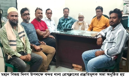 মহান বিজয় দিবস যথাযোগ্য মর্যাদায় পালণ উপলক্ষে ১৪ ডিসেম্বর রোববার বিকেল ৫টায় বন্দর থানা প্রেসক্লাবের কেক টাওয়ারস্থ কার্যালয়ে প্রস্তুতিমূলক সভা অনুষ্ঠিত হয়। ক্লাবের সভাপতি সাব্বির আহমেদ সেন্টুর সভাপতিত্বে প্রস্তুতিমূলক সভায়
