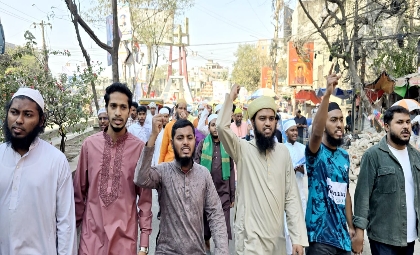 মহান আল্লাহ তাআ’লাকে নিয়ে কটূক্তি করার অভিযোগে গ্রেফতারকৃত বাউল শিল্পী আবুল সরকারের দৃষ্টান্তমূলক শাস্তির দাবিতে বিক্ষোভ মিছিল করেছে ইসলামী ছাত্র মজলিসের নারায়ণগঞ্জ মহানগর শাখা। ২৮ নভেম্বর-২০২৫, শুক্রবার বাদ জুমা শহরের