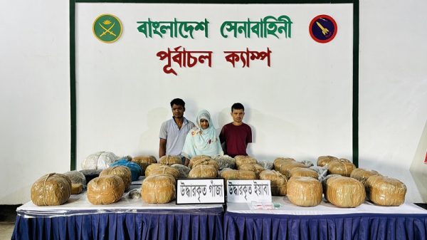 নারায়ণগঞ্জের রূপগঞ্জে সেনাবাহিনীর একটি বিশেষ অভিযানে তিন মাদক ব্যবসায়ীকে আটক করা হয়েছে। এ সময় তাদের আস্তানা থেকে ১২৩ কেজি গাঁজা এবং ২০০ পিস ইয়াবা উদ্ধার করা হয়। বুধবার ভোররাতে উপজেলার