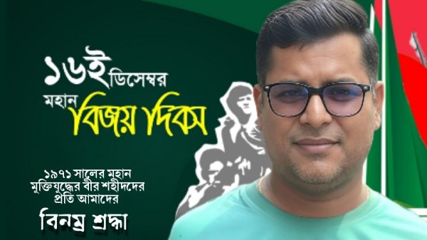 মহান বিজয় দিবস উপলক্ষে নারায়ণগঞ্জবাসীকে শুভেচ্ছা জানিয়েছেন ছাত্রদল নেতা আশরাফুল ইসলাম নিরব